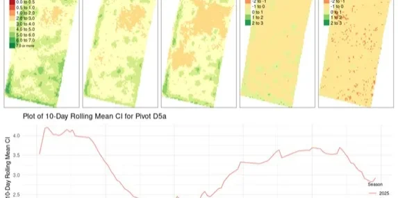 The reports provided are based on the chlorophyll index, or CI for short, this is an indicator for leaf-greenness and a direct indicator in crop health. The weekly reports show